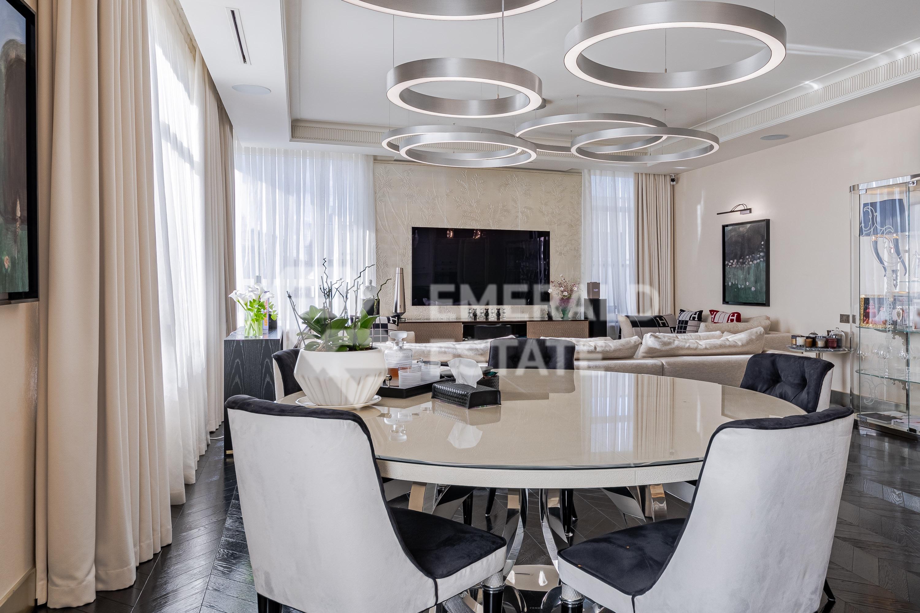В продажу предлагается роскошная квартира с дизайнерским ремонтом в клубном доме элит класса ЖК Barkli Virgin House на Остоженке. Функциональная планировка: - Кухня-гостиная, столовая - Спальня с зоной кабинета и с вместительным санузлом ( с ванной ) и зонами хранения вещей - Мастер-спальня с гардеробной и с санузлом ( с душевой кабиной ) - Спальня с санузлом ( с душевой кабиной ) - Гостевой санузел с постирочной зоной - Балкон Техника и мебель ведущих европейских производителей. Кухня Turri и мебель Visionnaire. В собственности имеются 2 машиноместа Ремонт выполнен из высококачественных натуральных материалов. ЖК Barkli Virgin House — это элитный клубный дом de lux класса, расположенный в самом центре Москвы на 1-м Зачатьевском переулке, удостоенный премии Urban Awards в 2011 году. Комплекс состоит из двух корпусов, выполненных в неоклассическом и современном стилях, и включает 21 квартиру. Инновационные инженерные системы, отделка дорогими материалами, дизайн от Келли Хоппен и развитая инфраструктура с подземным паркингом и благоустроенной территорией обеспечивают высочайший уровень комфорта для жителей. EMERALD ESTATE является участником ассоциации агентств элитной недвижимости AREA, что гарантирует высокий уровень сервиса и профессионализма.