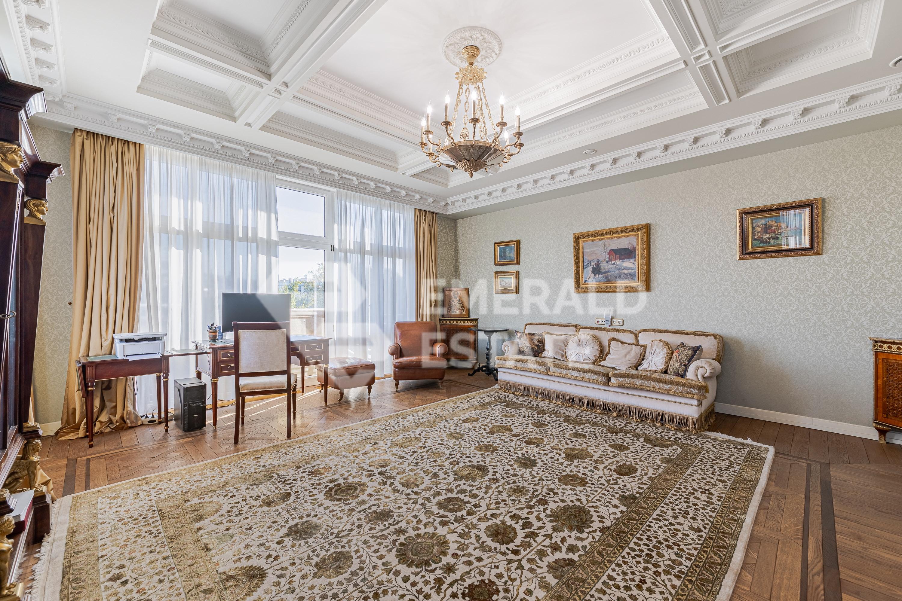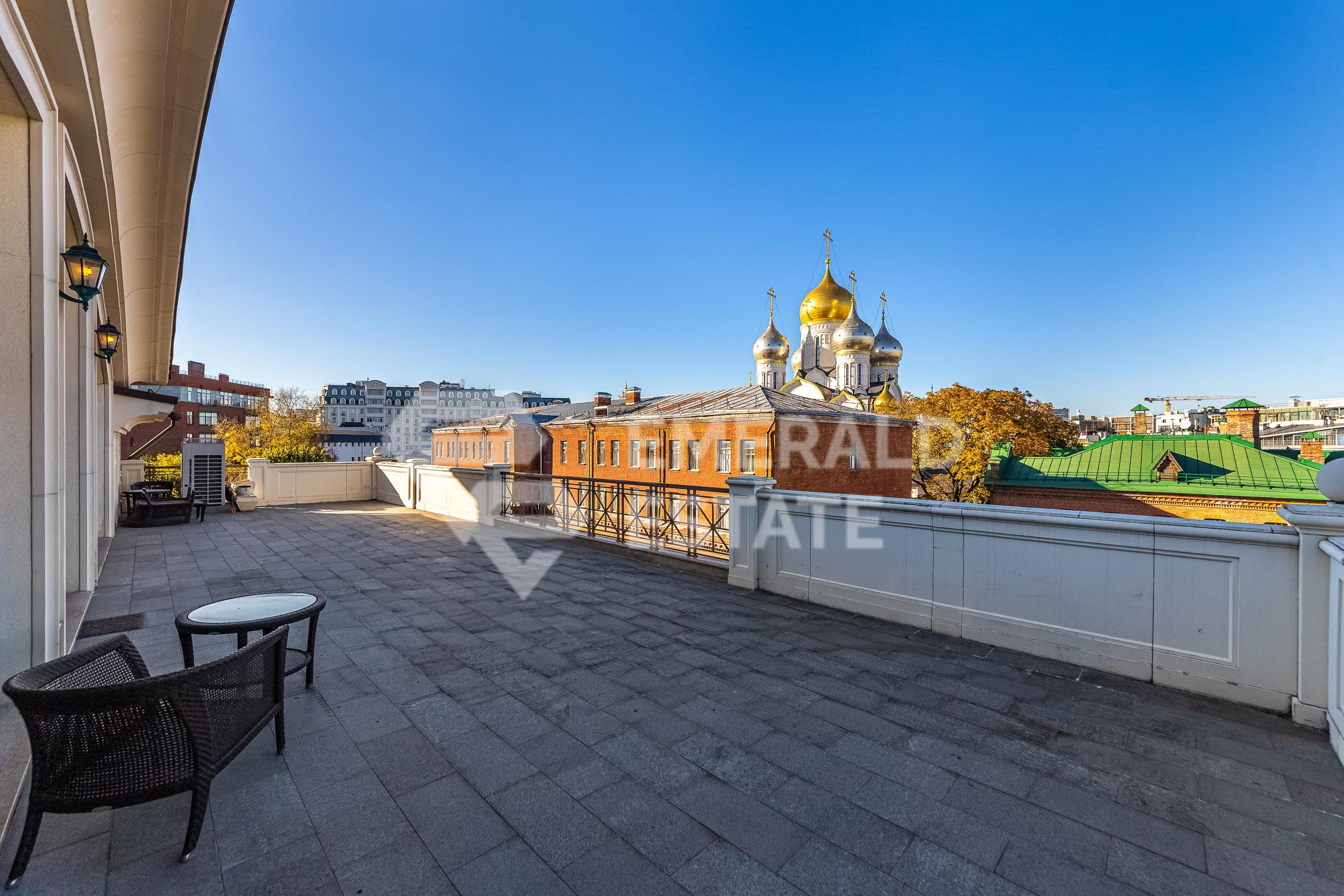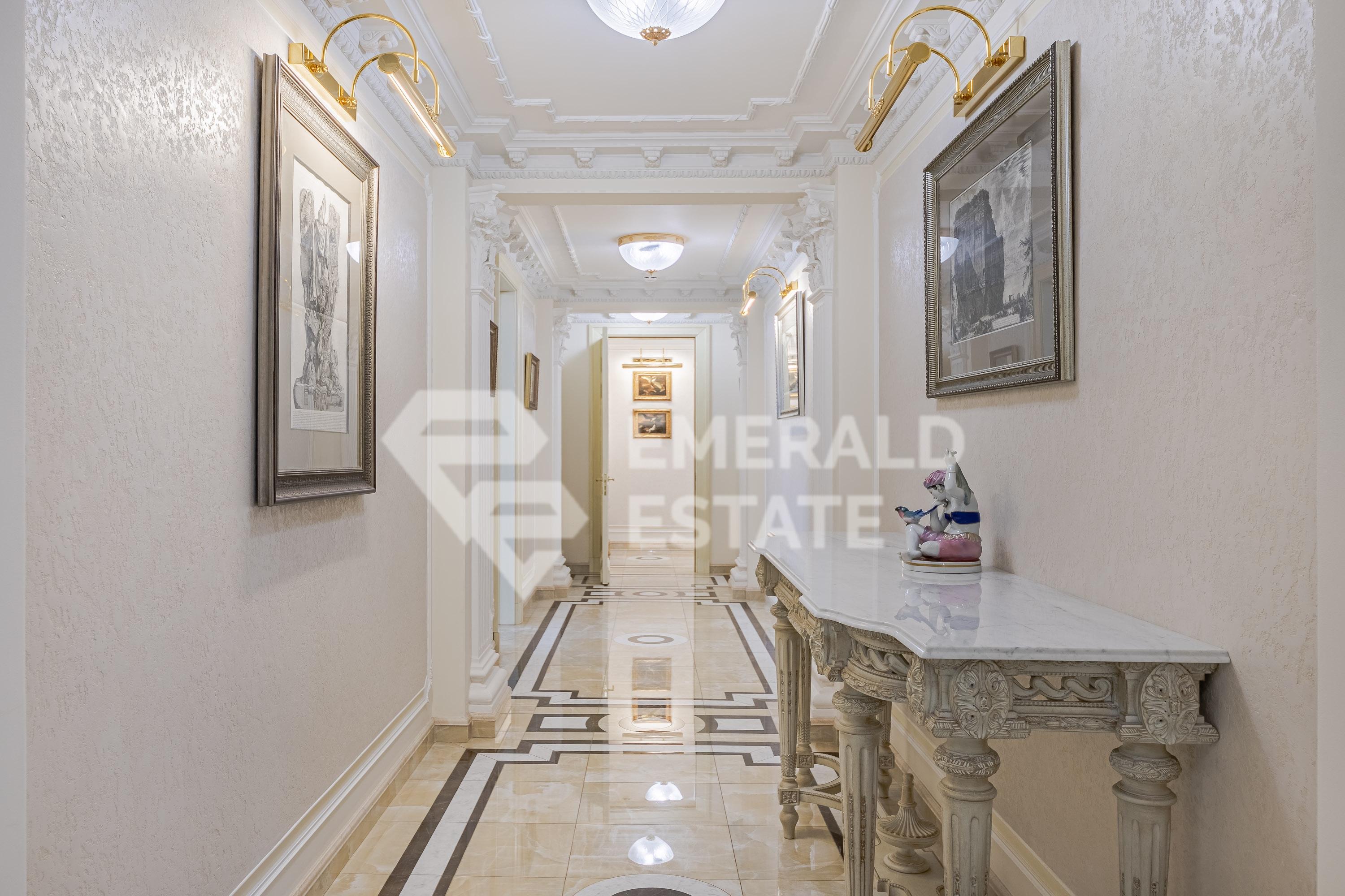 Элегантный пентхаус в "Молочный 7" В продажу предлагается роскошный пентхаус в клубном доме "Молочный 7", расположенный на Золотой миле в Москве. Высокие потолки в приемной зоне (4 м), наполняют светом этот уникальный объект. В дизайне использован неоклассический стиль с ампирными акцентами. Элегантные карнизы, оригинальные люстры и авторские предметы интерьера создают атмосферу уникальности и уюта. В квартире проведена реконструкция, она полностью готова к проживанию. Функциональной планировкой предусмотрено Первый уровень: • Вместительная гостиная (152 кв м) с камином и выходом на террасу с видом на Зачатьевский монастырь и зоной библиотеки. • Приватный блок из трех спален с ванными комнатами, одна из которых с окном и площадью 25,5 метров. • Кухня-столовая (58 кв м) и гостевой санузел. Второй уровень (детский блок - мансардный этаж): • Две отдельные спальни с ванными комнатами. • Техническая комната. • Кухня. • Зона кабинета. • Вместительные зоны хранения вещей. • Второй вход в квартиру. Качественная отделка включает паркет, мрамор и декоративные обои. Из окон открывается великолепный вид на центр города. В подземном паркинге имеются три машиноместа в собственности. Оперативные показы. Один взрослый собственник. Полная стоимость в договоре. Прямая продажа. Клубный ЖК "Молочный 7" состоит всего из пяти эксклюзивных квартир, обеспечивая уединение и элитарность. Комплекс окружен ландшафтным дизайном и забором для максимальной приватности. Оперативные показы. EMERALD ESTATE является участником ассоциации агентств элитной недвижимости AREA, что гарантирует высокий уровень сервиса и профессионализма.