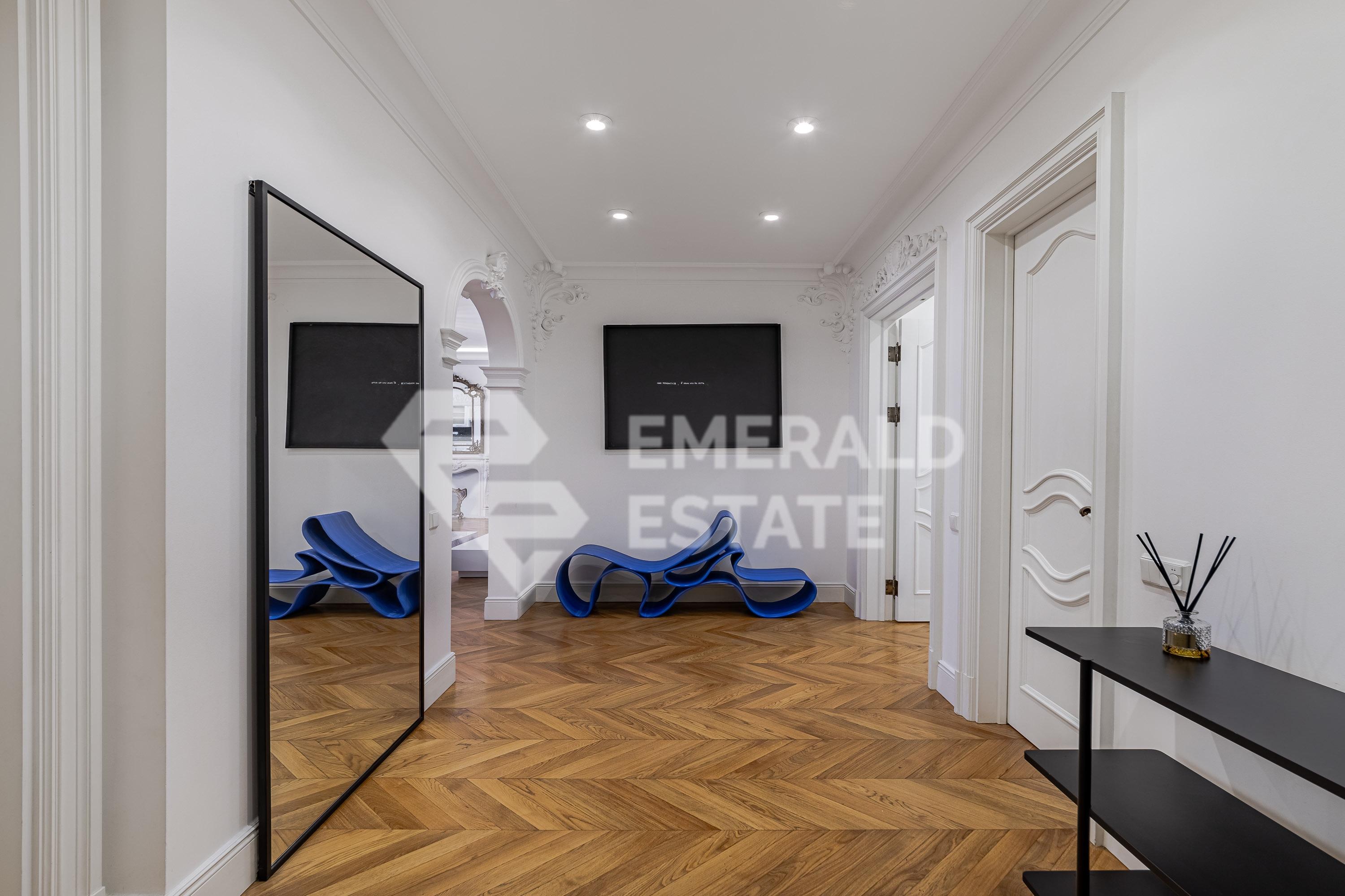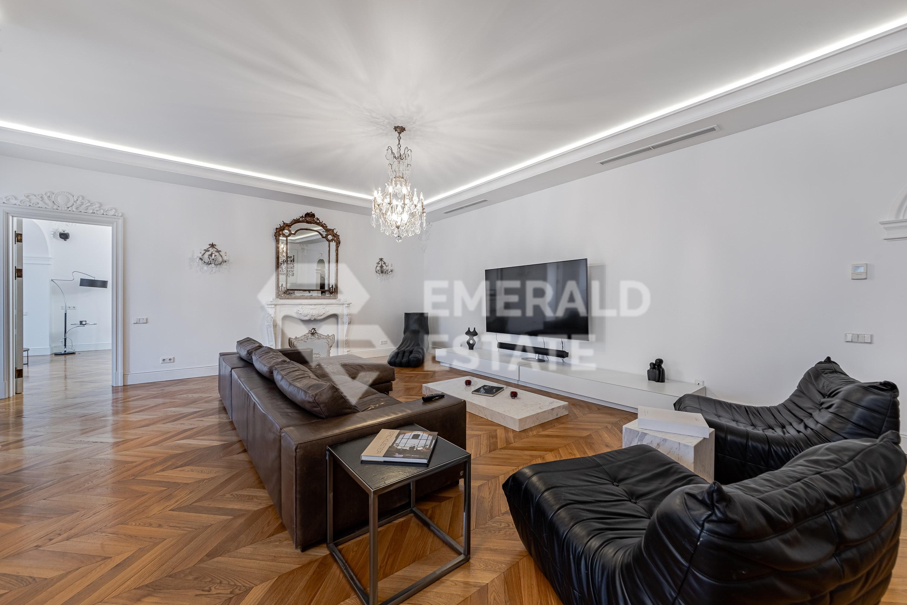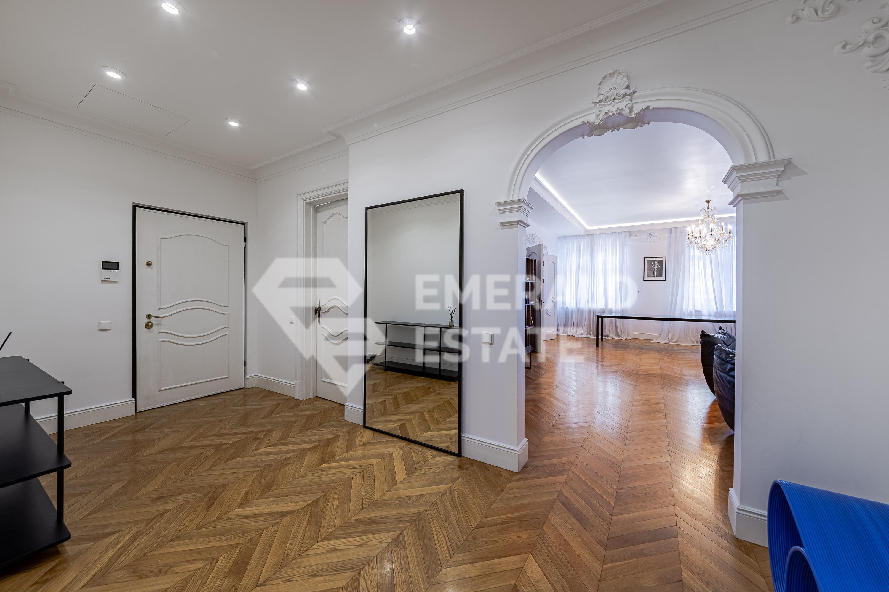 Предлагаем 4-х комнатную квартиру в элитном ЖК "Остоженка Парк Палас". Общая площадь помещения - 340 м с летними помещениями. Квартира оснащена: - 4 комнатами (3 спальнями) - 3 с/у - терраса - прачечная - 3 гардеробные Выполнен качественный дизайнерский ремонт. На полу выстелена паркетная доска из дуба, в зонах где плитка - подогрев пола. В квартире проведено современное кондиционирование. В стоимость входят 2 машиноместа в подземном паркинге. Жилой комплекс имеет закрытую, охраняемую, благоустроенную территорию со своей детской площадкой и прогулочной зоной отдыха. СПА-комплекс с бассейном 25м в Golden Mile. Рядом набережная реки Москвы, Садовое кольцо, Парк Горького. ЭМЕРАЛЬД ЭСТЕЙТ является участником ассоциации агентств элитной недвижимости AРEA, что гарантирует высокий уровень сервиса и профессионализма.