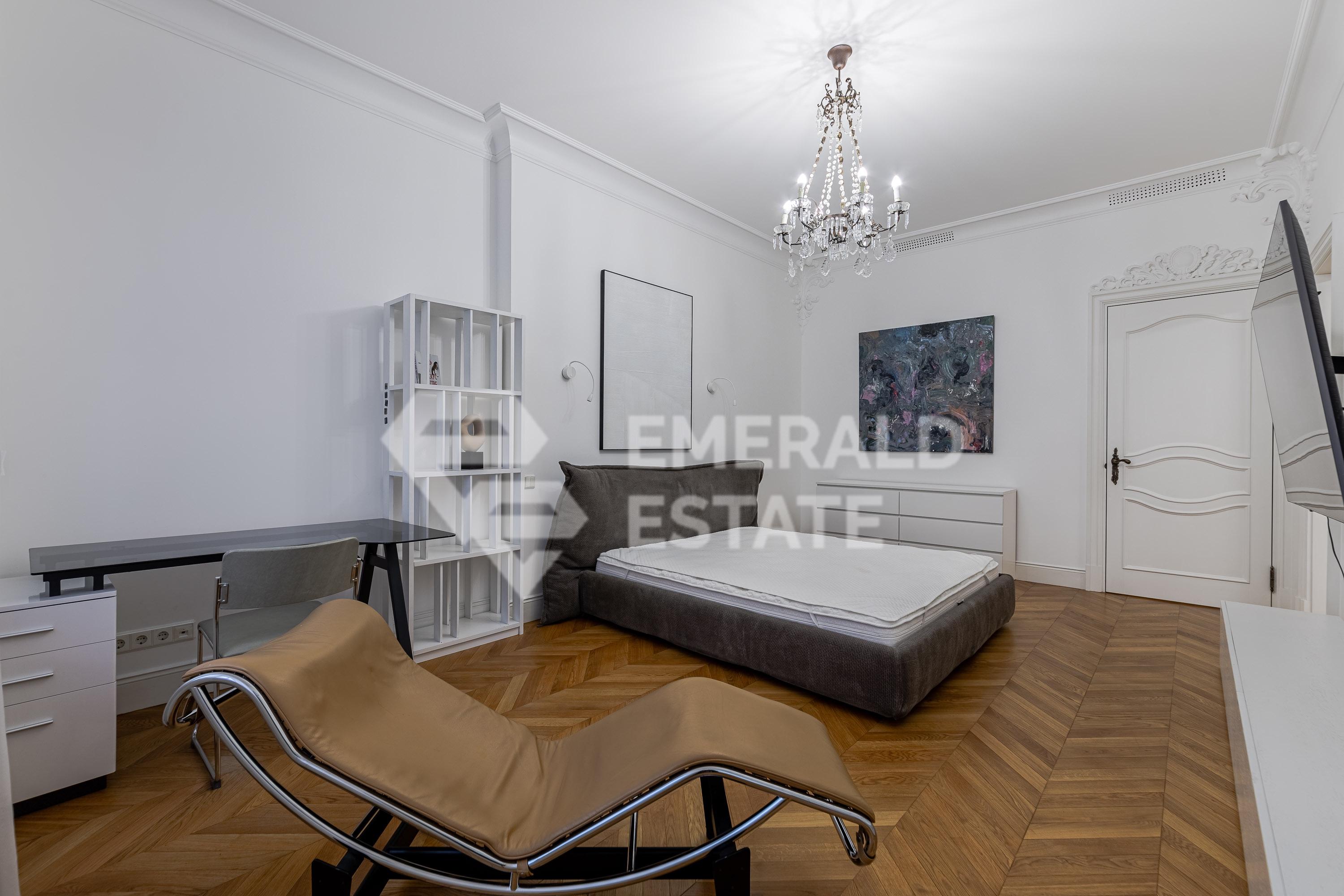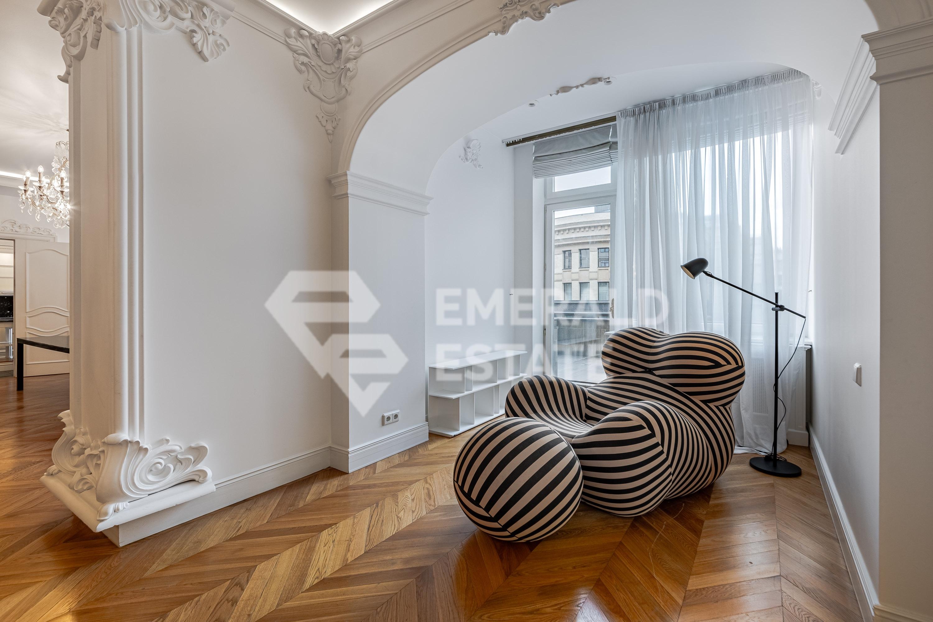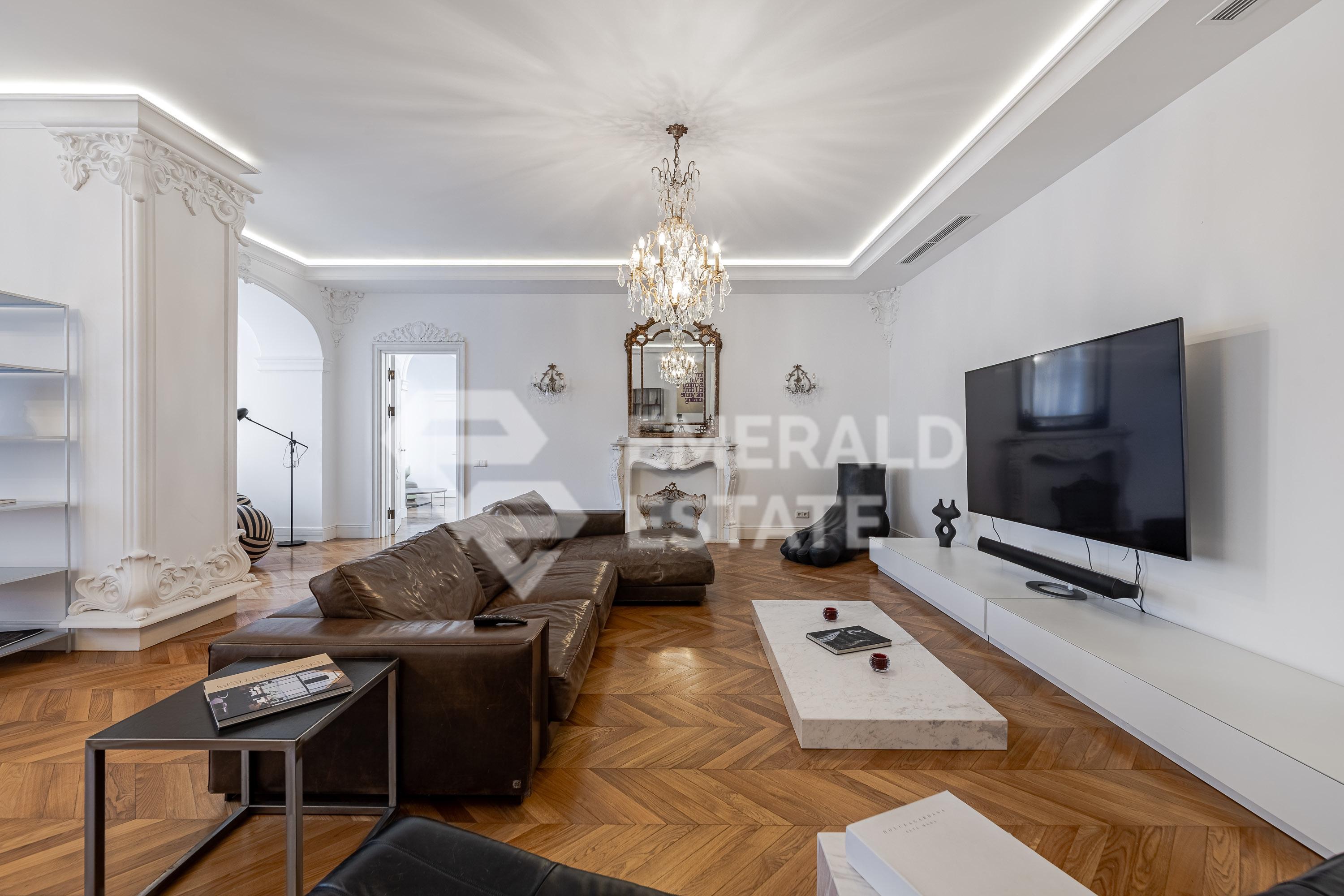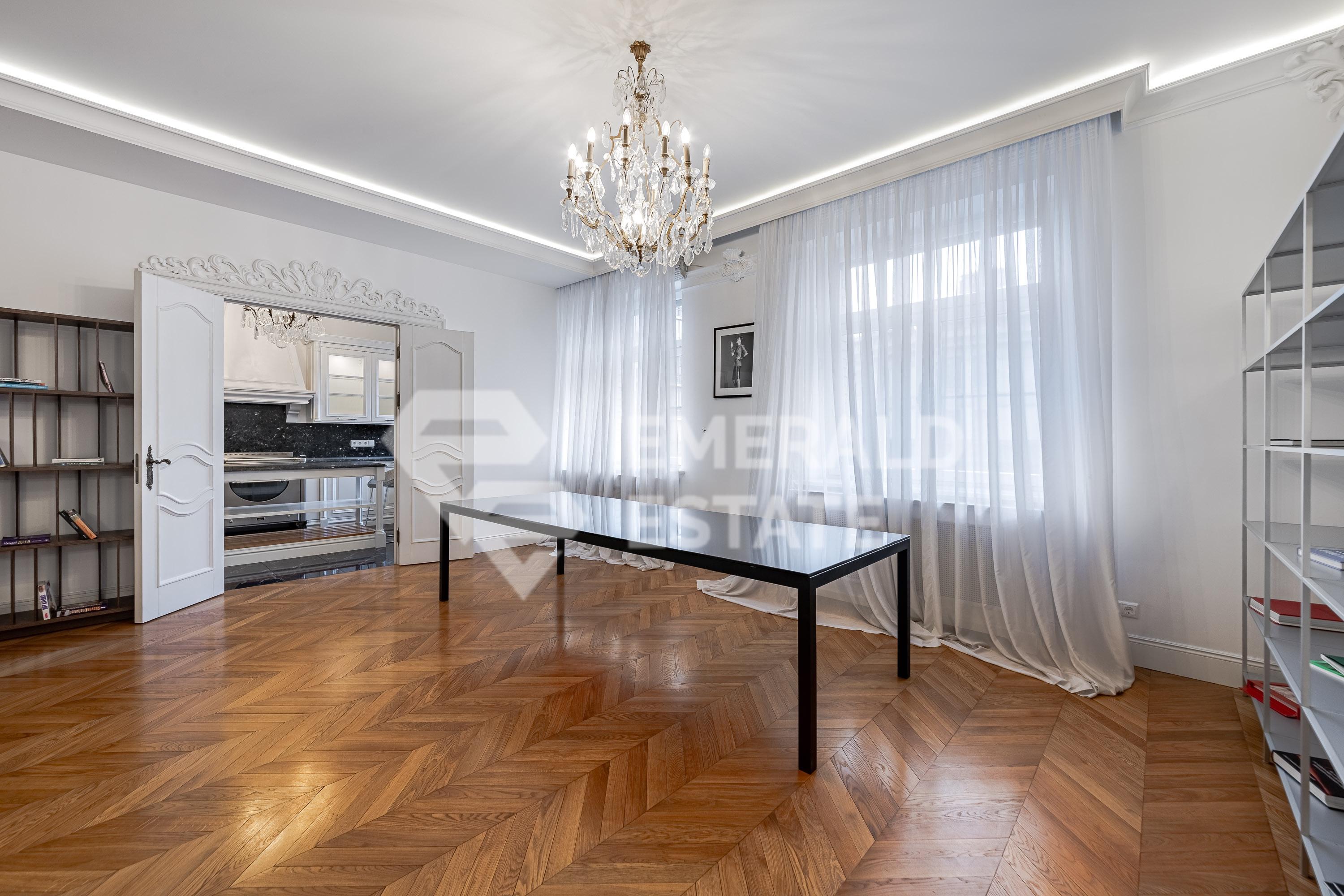 Предлагаем 4-х комнатную квартиру в элитном ЖК "Остоженка Парк Палас". Общая площадь помещения - 340 м с летними помещениями. Квартира оснащена: - 4 комнатами (3 спальнями) - 3 с/у - терраса - прачечная - 3 гардеробные Выполнен качественный дизайнерский ремонт. На полу выстелена паркетная доска из дуба, в зонах где плитка - подогрев пола. В квартире проведено современное кондиционирование. В стоимость входят 2 машиноместа в подземном паркинге. Жилой комплекс имеет закрытую, охраняемую, благоустроенную территорию со своей детской площадкой и прогулочной зоной отдыха. СПА-комплекс с бассейном 25м в Golden Mile. Рядом набережная реки Москвы, Садовое кольцо, Парк Горького. ЭМЕРАЛЬД ЭСТЕЙТ является участником ассоциации агентств элитной недвижимости AРEA, что гарантирует высокий уровень сервиса и профессионализма.