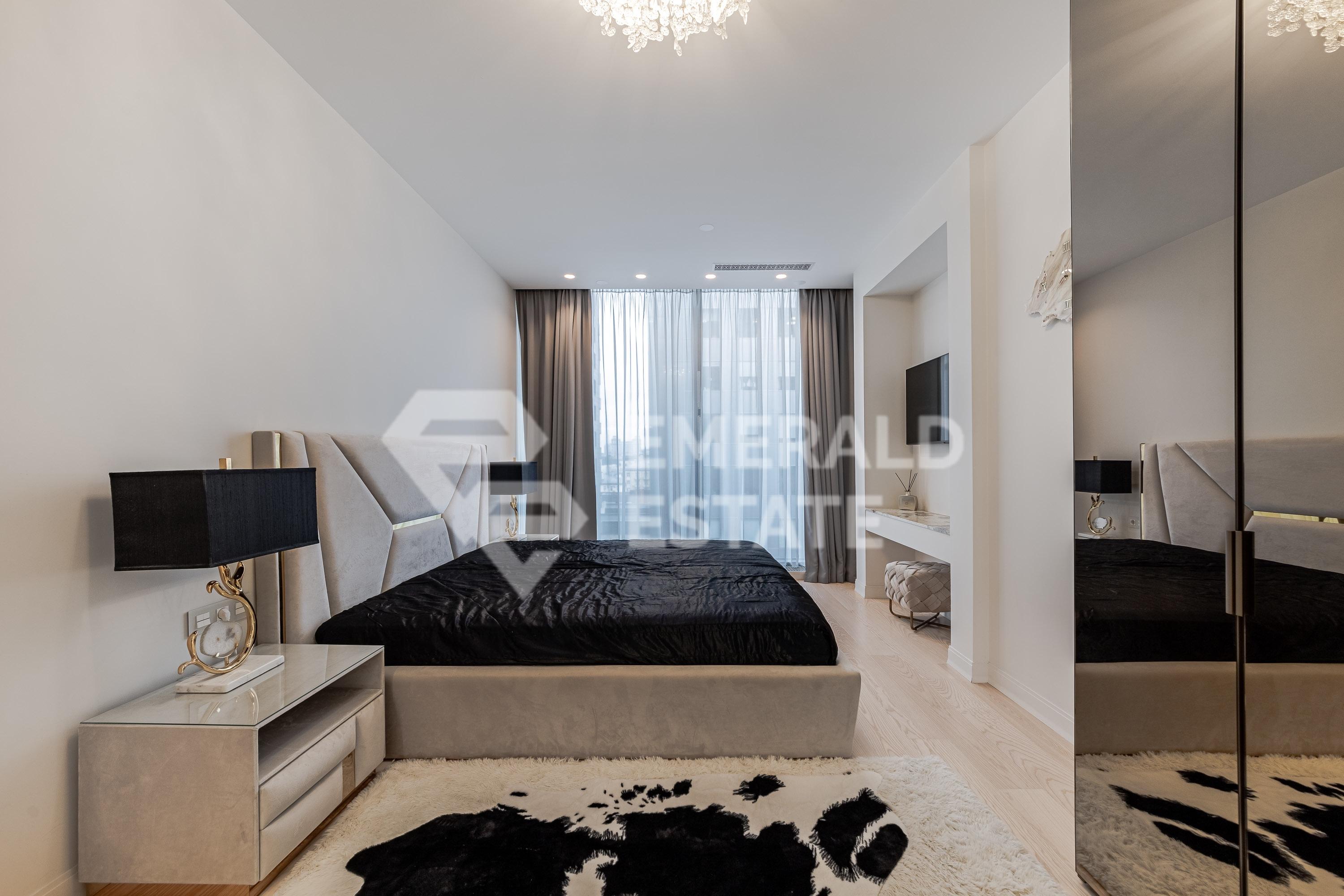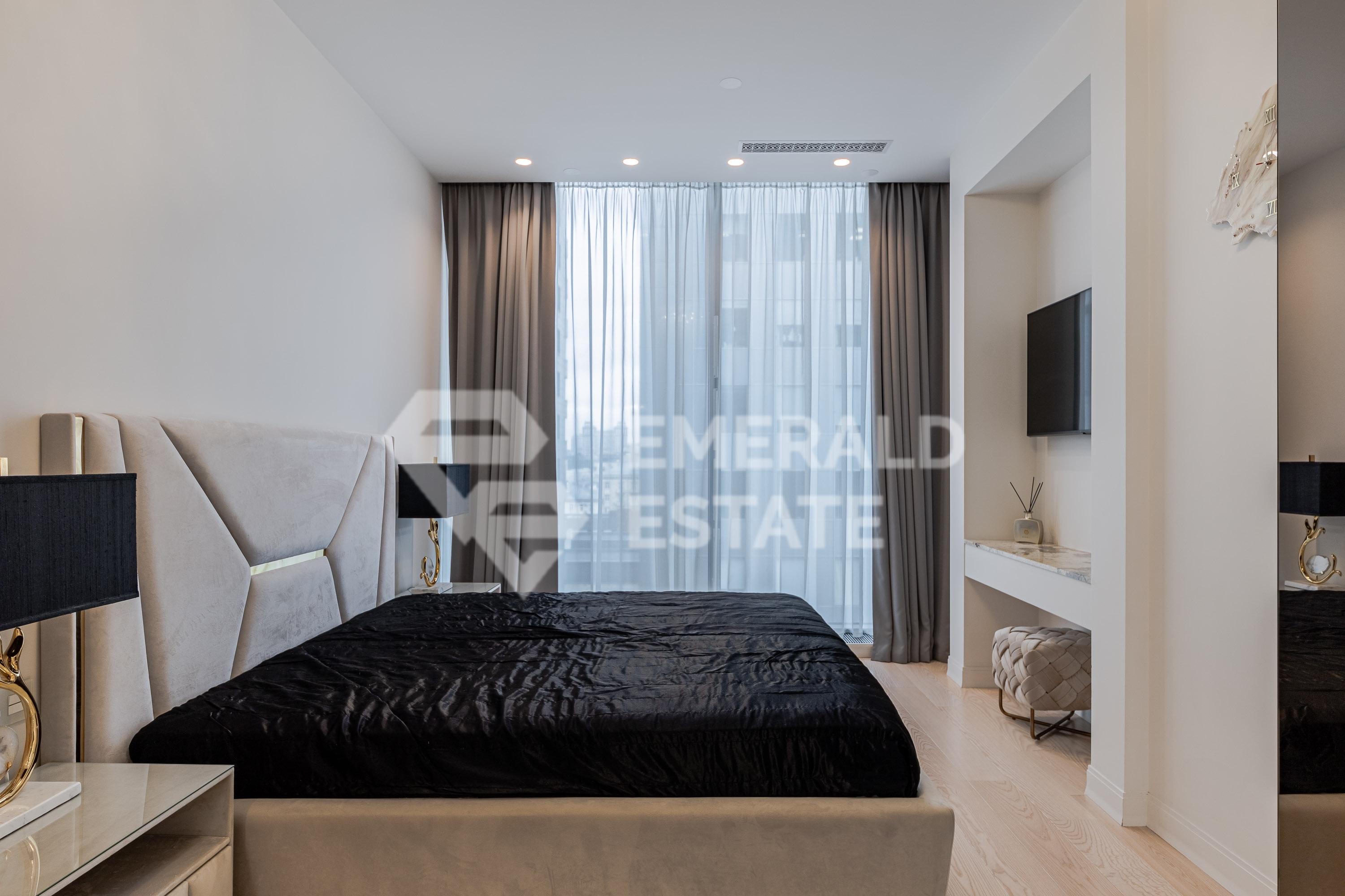Премиальные апартаменты. Планировочное решение: кухня-гостиная, мастер-спальня, гардеробная с постирочной, холл, гостевой санузел. Окна выходят в тихий двор. Открытый вид, солнечная сторона. Апартаменты полностью меблированы и укомплектованы встроенной техникой ( кофемашина, холодильник, микроволновая печь, посудомоечная, стиральная машины- Smeg, Bosch). На кухне фартук и островная часть-натуральный камень. Итальянские светильники. Установлено видеонаблюдение, система кондиционирования и вентиляции. Консьерж-сервис, на 6 ом этаже - камерный ресторан с живописным 20 метровым водопадом. Бесшумные лифты, повышенная система безопасности, подземный автоматизированный паркинг. Сложившаяся инфраструктура: все модные и культурные места Москвы в пешей доступности; до метро "Маяковская"-5 м/п. Удобный выезд на Садовое кольцо, ТТК. 1 собственник, полная стоимость, прямая продажа. Возможна временная регистрация. Пониженная налоговая ставка, комфортные коммунальные платежи. Оперативный показ. EMERALD ESTATE является участником ассоциации агентств элитной недвижимости AREA, что гарантирует высокий уровень сервиса и профессионализма.